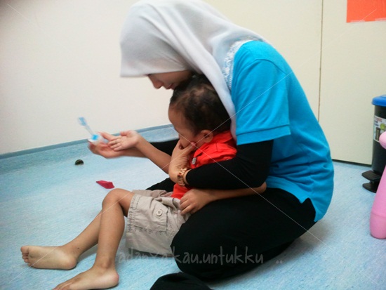 | ni main bubble..as usual dia refuse tak moh guna mulut dia untuk meniup.... tu yang 'cikgu' dok muncungkan mulut dia supaya dia boleh meniup..... |